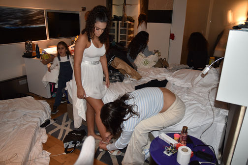 בסט הצילום הראשון צילמתי את ההכנות לבת מצווה של בת דודה שלי, נעמה. נעמה חגגה בת מצווה בדצמבר, כחודשיים אחרי תחילת המלחמה, ונאלצה למצוא דרך לחגוג את בת המצווה שלה למרות הבלגן. באותו הזמן הם שהו במלון וההכנות היו שם. התלוויתי אליה במהלך היום וצילמתי את תהליך ההתארגנות שלה- איפור, שיער והשמלה הלבנה.