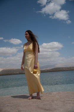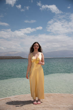 לקראת יום הצילום השביעי, ידעתי שאצלם בים המלח. אני ושתיים מחברותיי למגמה נסענו לים המלח כדי לצלם. לקראת הנסיעה, ידעתי שאני רוצה לבחור בספל צהוב, כדי שהצהוב יבלוט יפה בים המלח. הלכתי לחנות בדים, וקניתי בד צהוב על מנת לתפור שמלה. עבדתי על השמלה יומיים, ובנוסף קניתי תכשיטים מזהב מכיוון שעל הספל עיטורים מזהב. כשהגענו לים המלח, בחרנו לצלם בחוף פטריות ים המלח, מכיוון שהן מאוד יפות. במהלך הצילומים הייתה רוח חזקה והאור מהשמש המשיך ללכת ולחזור. תנאים אלו הקשו על הצילום, ובכל פעם שהייתה שמש ישר צילמתי. היה חשוב לי לצלם את יום צילום זה בלונג שוט, על מנת להראות את השמלה כולה, ואת יופיו של ים המלח. צילמתי את רוב התמונות לאורך, מה שבדיעבד אני מתחרטת עליו מכיוון שלא רואים את כל הנוף היפה של ים המלח.